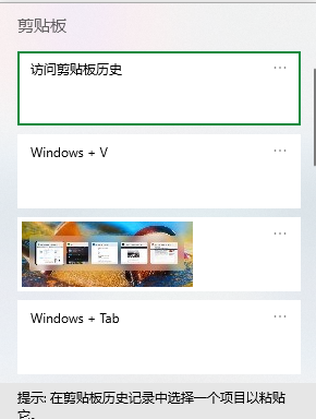 使用Windows + V键调出剪贴板历史记录,轻松找回之前复制过的文本、图片等内容。