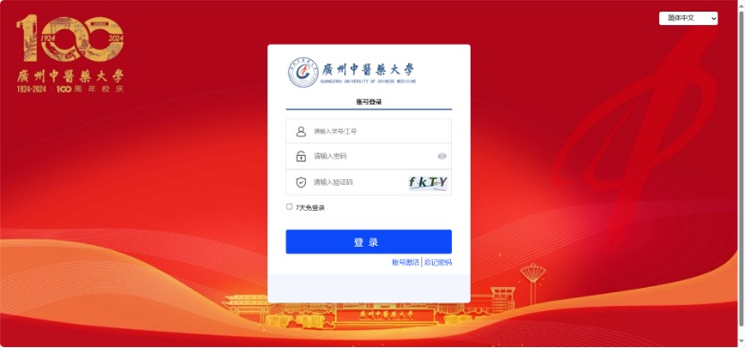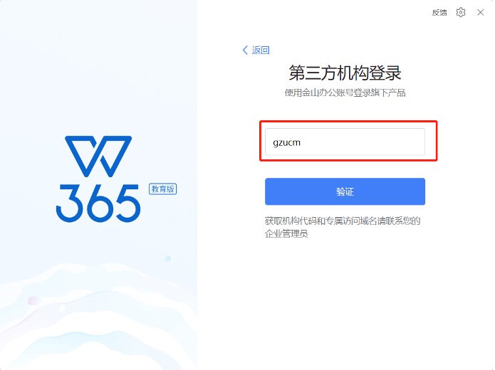 在第三方企业登录框中,输入学校的认证代码“gzucm”点击验证。