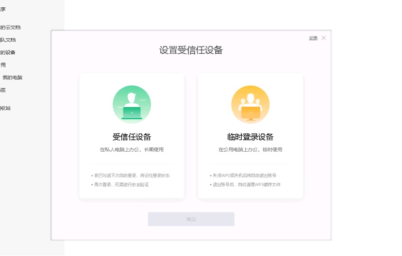 完成登录后根据实际情况选择设备授信