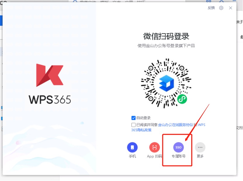 在客户端登录界面,选择“专属账号SSO”方式。