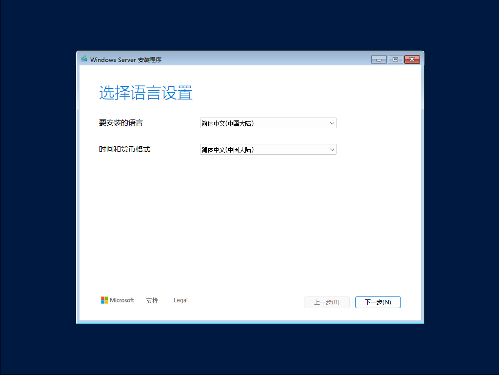 1.将Windows Server 2025的安装光盘放入光驱,打开电脑,选择从光驱启动(如果是用U盘制作的Windows Server 2025启动盘,选择从相应的U盘启动),然后就可以看到Windows Server 2025的启动界面。选择语言设置