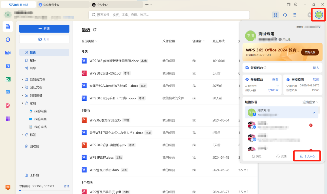 可以把个人会员账号和学校WPS专属账号同步,实现账号权益叠加,权益最大化,具体步骤参考:https://365.kdocs.cn/l/ckHCfFX6JhXy