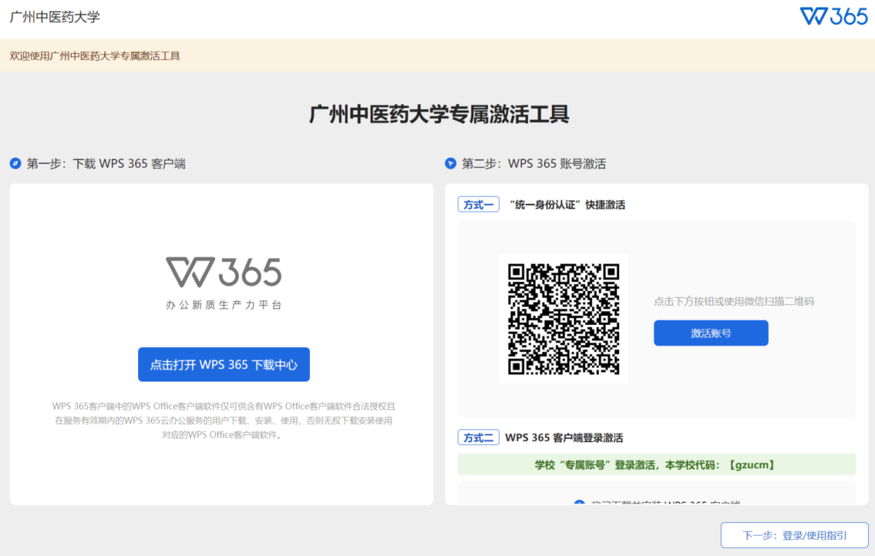 3.通过微信/手机号码登录您的「广州中医药大学」WPS账号